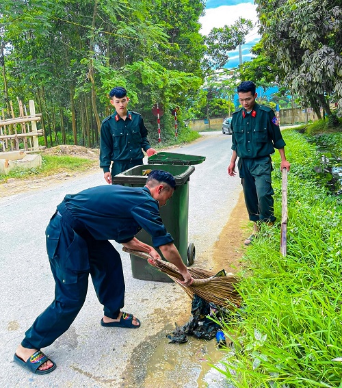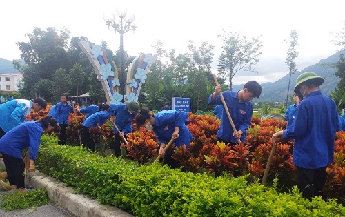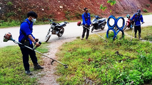 ĐVTN huyện Nậm Pồ vệ sinh môi trường, cắt cỏ ven đường.