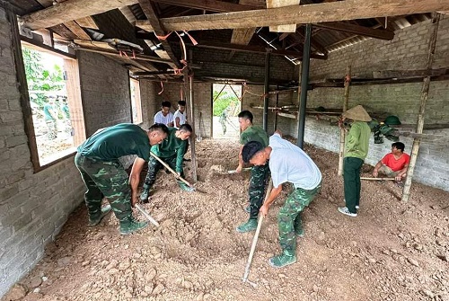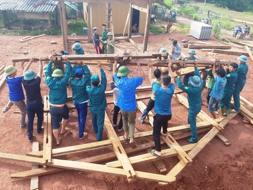 ĐVTN huyện Điện Biên Đông giúp dân dựng nhà.