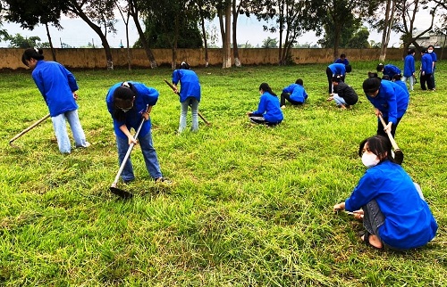 ĐVTN Đoàn trường CĐSP Điên Biên tham gia dọn cỏ, vệ sinh môi trường.