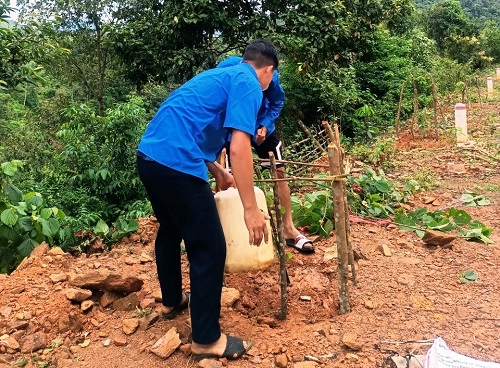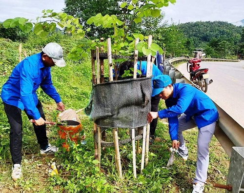 ĐVTN huyện Tuần Giáo chăm sóc hàng cây hoa ban.
