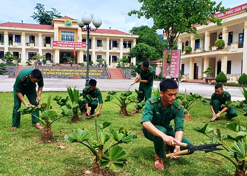 ĐVTN Bộ đội biên phòng tỉnh chăm sóc bồn hoa thanh niên.