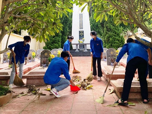 ĐVTN thành phố tham gia vệ sinh tại nghĩa trang liệt sỹ.