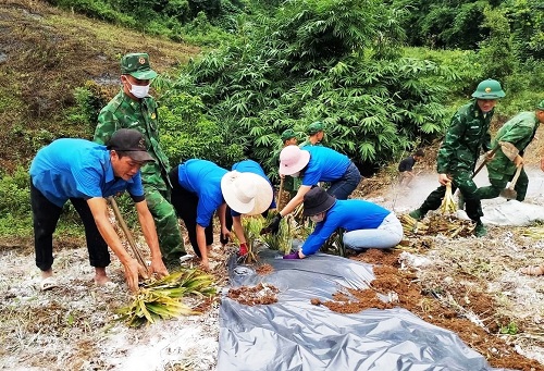 ĐVTN huyện Điện Biên tham gia mô hình trồng dứa.