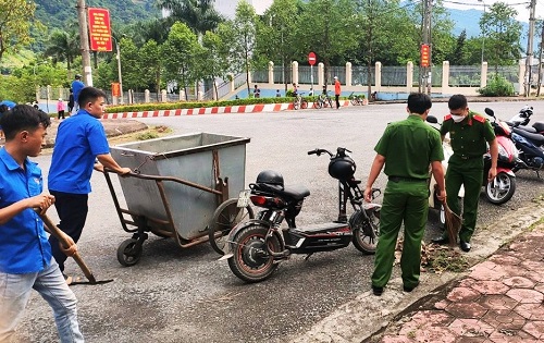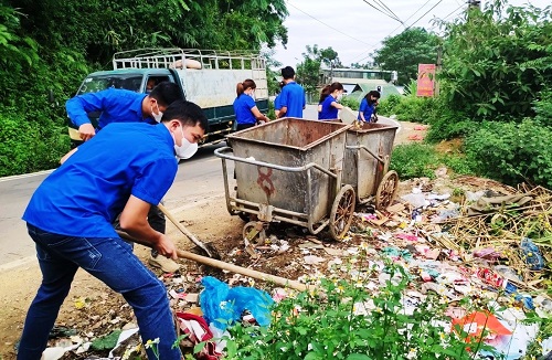 ĐVTN huyện Tủa Chùa thu gom rác thải vệ sinh môi trường.