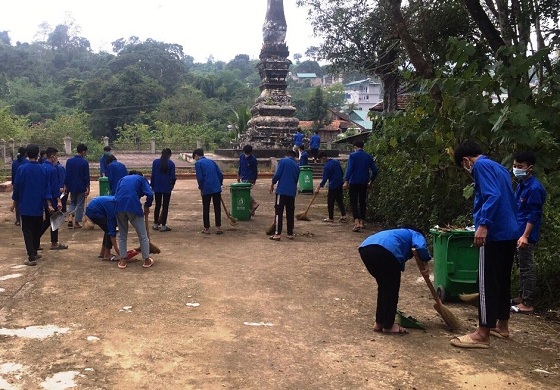 ĐVTN xã Mường Luân, huyện Điện Biên Đông vệ sinh môi trường tại khu vực di tích Tháp Mường Luân.