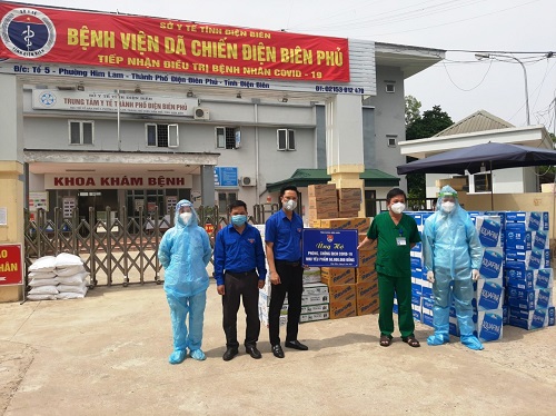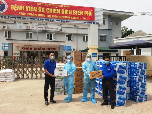 tại bệnh viện dã chiến Điện Biên Phủ. Sáng cùng ngày, đoàn công tác của Tỉnh đoàn Điện Biên tới thăm hỏi, động viên các y, bác sỹ đang làm nhiệm vụ tại bệnh viện dã chiến Điện Biên Phủ và trao tặng các nhu yếu phẩm hỗ trợ các bệnh nhân đang cách ly và điều trị tại đây gồm: cá hộp, thịt hộp, nước lọc, sữa, chanh muối. Tổng trị giá quà trao là 60.000.000 đồng.