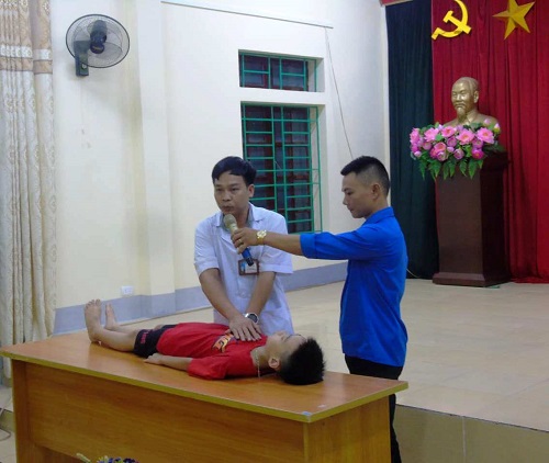 Đoàn phường Nam Thanh phối hợp với Y tế phường hướng dẫn cho thiếu nhi về kỹ năng