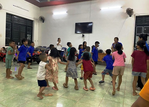 Đội tình nguyện viên tổ chức sinh hoạt hè cho thiếu nhi phường Mường Thanh.