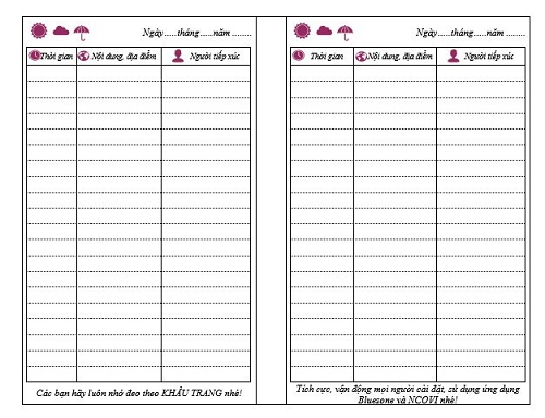Mẫu sổ “Nhật ký thanh niên thời Covid-19” do Ban Thường vụ Huyện đoàn ban hành: