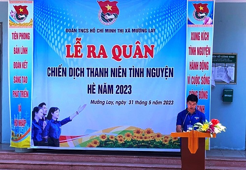 Tại Lễ khởi động, thay mặt Ban Thường vụ Thị đoàn và Ban Chỉ đạo Chiến dịch thanh niên tình nguyện hè năm 2023, đồng chí Bí thư Thị đoàn, Trưởng ban chỉ đạo Chiến dịch đã phát biểu phát động Chiến dịch thanh niên tình nguyện hè năm 2023 và chỉ đạo, quán triệt, giao nhiệm vụ cụ thể cho các cấp bộ đoàn và đoàn viên thanh niên trong toàn thị xã, với các nhiệm vụ chính, cụ thể như: Tổ chức tổ chức tuyên truyền, triển khai thực hiện có hiệu quả Nghị quyết Đại hội Đoàn toàn quốc lần thứ XII, tuyên truyền về truyền thống vẻ vang của Đoàn TNCS Hồ Chí Minh và tuổi trẻ tỉnh Điện Biên; tổ chức các hoạt động tham gia xây dựng nông thôn mới, đô thị văn minh; các hoạt động an sinh xã hội, phục vụ nhân dân; các hoạt động thúc đẩy tinh thần sáng tạo của thanh niên; hỗ trợ ĐVTN, Nhân dân chuyển đổi số, thực hiện Đề án 06, sử dụng dịch vụ công trực tuyến; các hoạt động hỗ trợ thanh niên khởi nghiệp; các hoạt động tư vấn hướng nghiệp, hỗ trợ việc làm cho thanh niên; tổ chức các hoạt động chăm sóc thiếu niên, nhi đồng; đặc biệt là các hoạt động kỷ niệm 70 năm giải phóng thị xã Mường Lay - Ngày Bác Hồ gửi thư cho đồng bào, cán bộ Lai Châu (12/12/1953-12/12/2023); triển khai các đội hình thực hiện các công trình, phần việc của thanh niên; triển khai các hoạt động bảo vệ môi trường như: trồng cây xanh, làm đẹp cảnh quan, chống rác thải nhựa, bảo vệ nguồn nước sạch, phân loại rác thải tại nguồn, duy trì các tuyến đường xanh, tuyến đường “Sáng - Xanh - Sạch - Đẹp - Văn minh - An toàn”, “Ngày Chủ nhật xanh” …