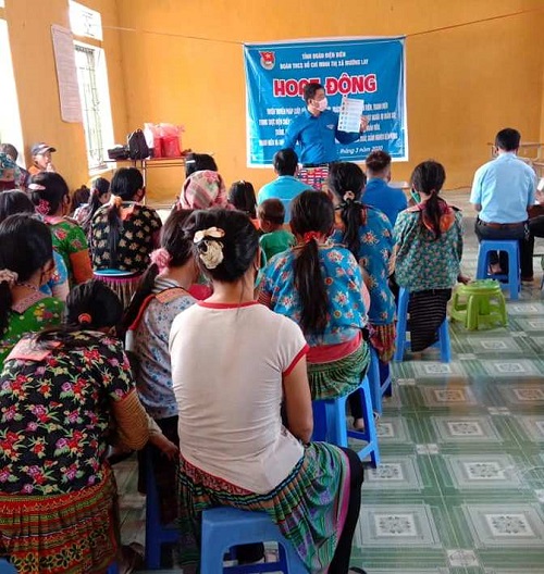 Đoàn viên, thanh niên thị xã Mường Lay hướng dẫn các em thiếu niên nhi đồng