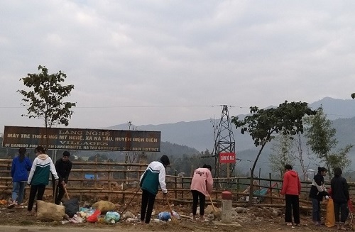 Hình 2: Đoàn viên, học sinh trường THPT Nà Tấu ra quân Ngày Chủ nhật xanh.