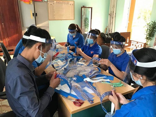 Cán bộ, ĐVTN huyện Mường Ảng tham gia làm kính chống giọt bắn tặng tuyến đầu phòng chống dịch.