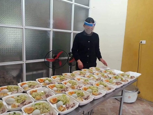 ĐVTN huyện Mường Ảng tham gia hỗ trợ nấu cơm phát cho các đối tượng cách ly tập trung.