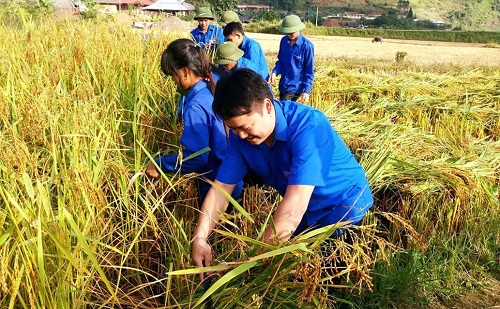 Đoàn Thanh niên huyện Tủa Chùa, giúp gia đình chính sách thu hoạch lúa Chiêm Xuân.