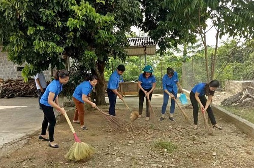 Đoàn thanh niên huyện Mường Ảng, giúp gia đình chính sách dọn dẹp khuôn viên nhà ở.