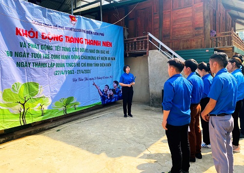 của Đoàn TNCS Hồ Chí Minh tỉnh Điện Biên. Trước đó, vào ngày 26/02/2023, Ban Thường vụ Thành đoàn cũng đã chỉ đạo các cơ sở Đoàn ra quân hưởng ứng tháng Thanh niên với các hoạt động cụ thể: Phối hợp với Đoàn cơ sở Điện lực tỉnh tổ chức cho hơn 120 đoàn viên, thanh niên cắt, tỉa hàng cây hoa Ban và lao động dọn vệ sinh môi trường tại khu vực trụ sở Thành ủy - HĐND - UBND thành phố và Sân quảng trường thành phố Điện Biên Phủ; Đồng loạt ra quân Chủ nhật Xanh, các cơ sở Đoàn ra quân dọn dẹp vệ sinh môi trường tại khu dân cư, cơ quan, trường học; phát quang bụi rậm, cải tạo bông hoa cây cảnh, xử lý các điểm đen rác thải; xây dựng các tuyến đường thanh niên sáng – xanh – sạch – đẹp, thu gom nhựa rác tái chế,.... Nhằm phát huy truyền thống “Uống nước nhớ nguồn”, các cơ sở Đoàn cũng tổ chức chăm sóc, chỉnh trang khuôn viên một số nghĩa trang TNXP trên địa bàn thành phố. Một số cơ sở Đoàn tổ chức sinh hoạt chuyên đề giới thiệu về quá trình 60 năm hình thành và lịch sử các chặng đường phát triển của Đoàn TNCS Hồ Chí Minh tỉnh Điện Biên qua các thời kỳ giúp các em học sinh, đoàn viên, thanh niên có thêm hiểu biết và nhận thức đúng đắn về tổ chức Đoàn.