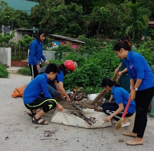 Đoàn phường Nam Thanh ra quân vệ sinh môi trường tuyến đường Noong Bua - Pú Tửu.