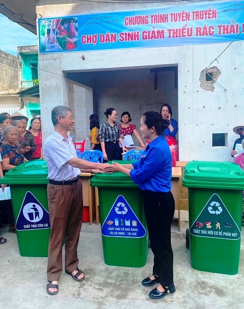 Đoàn phường Nam Thanh tuyên truyền Chợ dân sinh giảm thiểu rác thải nhựa.