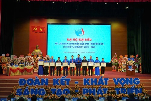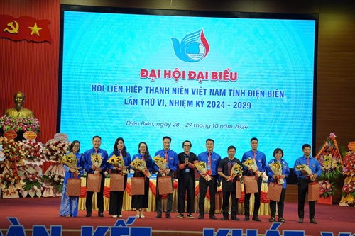 chúc mừng các Ủy viên UB Hội LHTN Việt Nam tỉnh khóa VI, nhiệm kỳ 2024-2029. Dịp này, Trung ương Hội LHTN Việt Nam, UBND tỉnh Điện Biên đã trao tặng nhiều bằng khen, giấy khen cho các tập thể, cá nhân đã có thành tích xuất sắc trong công tác Hội và phong trào thanh niên, nhiệm kỳ 2019 - 2024. Cũng tại Đại hội đã trao quà chia tay các anh chị Ủy viên UB Hội khóa V thôi không tham gia UB Hội khóa VI, nhiệm kỳ 2019 - 2024.