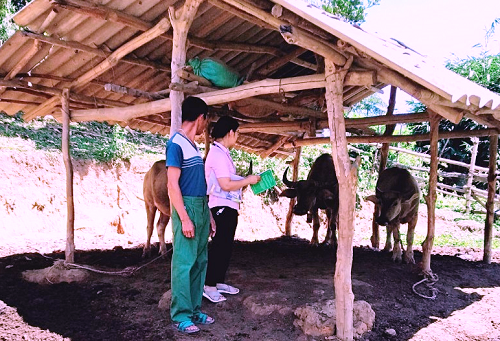 Đến tham quan mô hình chăn nuôi của gia đình Ông Cà Văn Khiêm sống tại bản Hả, xã Pá Khoang, chúng tôi không khỏi ngỡ ngàng bởi sự phát triển kinh tế của gia đình ông. Từ hộ gia đình có đời sống kinh tế còn gặp nhiều khó khăn; giờ đây ông Khiêm đã có 03 con trâu. Ông Khiêm chia sẽ: “Không có vốn, thì không thể làm gì được. Ngay sau khi được Đoàn xã tạo điều kiện cho gia đình được tiếp cận nguồn vốn từ NHCSXH là 50 triệu đồng. Vợ chồng tôi mạnh dạn đầu tư mua 02 con trâu, hiện nay gia đình đã có 03 con trâu.