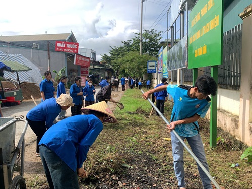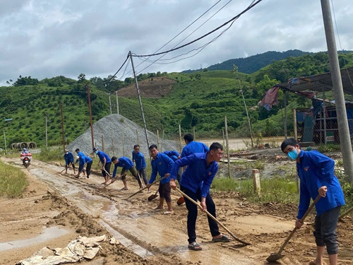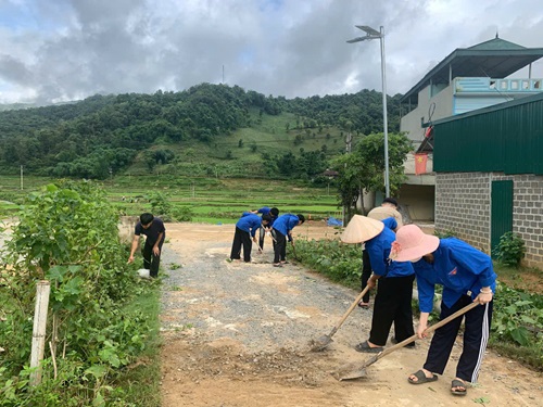 Đoàn xã Mường Luân dọn dẹp vệ sinh đường giao thông thôn bản.