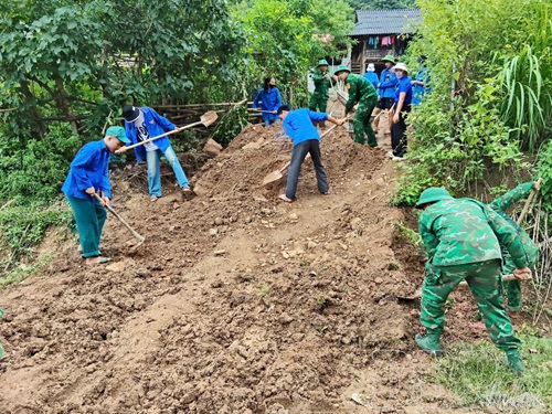 ĐVTN xã Mường Nhà sửa chữa đường vào bản Lói.