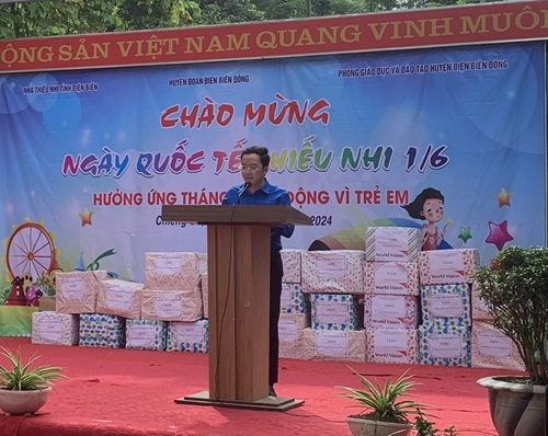 Đồng chí Mùa Chiến Thắng, Phó Bí thư Thường trực Tỉnh đoàn phát biểu tại Chương trình. Tham dự Chương trình có đồng chí Mùa Chiến Thắng, Phó Bí thư Thường trực Tỉnh đoàn; lãnh đạo Văn phòng Tỉnh đoàn, Nhà Thiếu nhi tỉnh; lãnh đạo Huyện đoàn Điện Biên Đông; lãnh đạo Phòng Giáo dục và Đào tạo huyện Điện Biên Đông; đại điện lãnh đạo xã Chiềng Sơ, Đoàn xã Chiềng Sơ, đoàn viên thanh niên, cùng các thầy giáo, cô giáo và các em thiếu nhi, học sinh trường PTDTBT THCS, trường PTDTBT Tiểu học và các trường Mầm non trên địa bàn xã Chiềng Sơ.