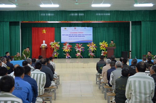 Toàn cảnh Chương trình “Thắp sáng ước mơ hoàn lương” năm 2024 Phát biểu tại chương trình, đồng chí Lò Xuân Hạnh - Phó Bí thư Tỉnh đoàn cho biết Chương trình được tổ chức với mục đích tiếp tục phát huy vai trò, trách nhiệm của tổ chức Đoàn - Hội các cấp trong công tác giáo dục cho phạm nhân trong độ tuổi thanh niên trên địa bàn tỉnh trong việc nâng cao đời sống văn hóa, tinh thần, khơi dậy niềm tin, xóa bỏ mặc cảm và sự tự ti. Từ đó các phạm nhân có động lực để phấn đấu học tập, nỗ lực cải tạo tiến bộ, sớm hưởng các chính sách khoan hồng của Đảng và Nhà nước, trở về đoàn tụ cùng gia đình, tái hòa nhập cộng đồng và trở thành người có ích cho xã hội.
