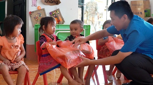 Tặng quà cho già làng, trưởng bản, người uy tín, trẻ em có hoàn cảnh khó khăn.