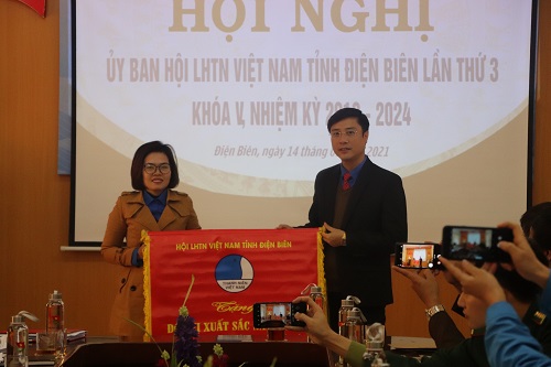 trao tặng Cờ thi đua xuất sắc cho đại diện Hội LHTN Việt Nam huyện Điện Biên.