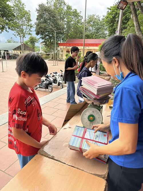 Mô hình “Đổi rác và giấy lấy cây” bao gồm các hoạt động thu gom phế liệu, giấy vụn, sách vở cũ, báo, vỏ lon, chai nhựa, pin… và đổi lại những chậu cây cảnh nhỏ, xinh như sen đá, xương rồng... do các bạn ĐVTN tự ươm trồng. Phế liệu, giấy thu về được phân loại và sử dụng với nhiều mục đích khác nhau. Những sách giáo khoa, sách ôn luyện hay sách còn mới sẽ được các bạn ĐVTN gom riêng và tặng lại cho các trường học, Nhà văn hoá bản xây dựng công trình Vì đàn em thân yêu “Tủ sách yêu thương”. Giấy vụn và các loại rác thải sẽ gom lại bán để gây quỹ, tiếp tục ươm trồng cây xanh, chuẩn bị cho hoạt động “Đổi rác và giấy lấy cây” vào những lần tiếp theo và thực hiện các hoạt động an sinh xã hội.