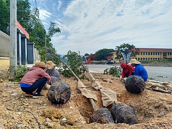 Một số hình ảnh về hoạt động trồng cây sao đen trên tuyến đường 42 m của ĐVTN huyện Mường Ảng