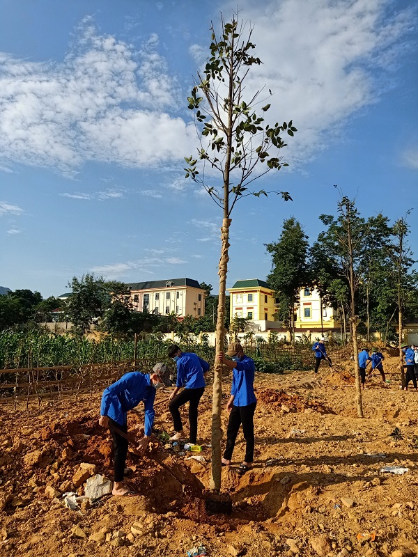 Nhằm phát huy vai trò của tổ chức đoàn, hội tham gia vào sáng kiến của Thủ tướng Chính phủ về trồng 1 tỷ cây xanh trong 5 năm (2021-2025) “Vì một Việt Nam xanh”, hưởng ứng “Tết trồng cây đời đời nhớ ơn Bác Hồ” và Ngày môi trường thế giới năm 2021, trong 02 ngày, “Thứ 7 tình nguyện” và “Chủ Nhật xanh” (ngày 08/5 và ngày 09/5/2021), Huyện đoàn Mường Ảng đã huy động trên 50 ĐVTN tham gia đóng góp ngày công lao động trồng trên 100 cây sao đen trên tuyến đường 42m huyện Mường Ảng.