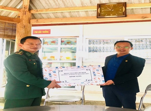 Đồng chí Trần Thanh Bắc - Bí thư Đoàn trường CĐSP Điện Biên tặng quà cho cán bộ, chiến sĩ