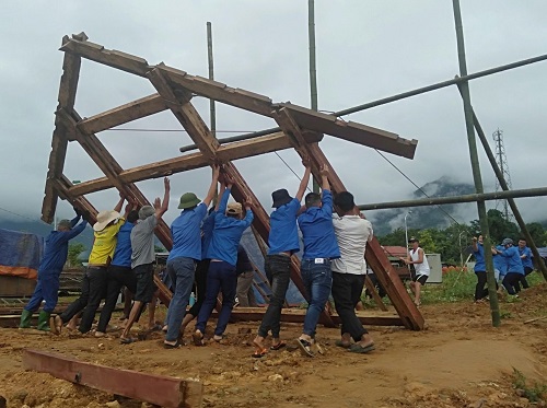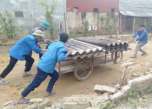 Đoàn viên thanh niên giúp nhân dân tháo dỡ nhà, di chuyển tài sản đến nơi ở mới.