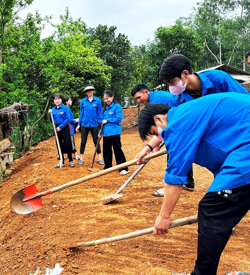 Đoàn viên, thanh niên hỗ trợ đóng góp ngày công cải tạo mặt bằng.