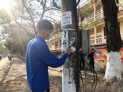 ĐVTN tham gia bóc xóa quảng cáo, rao vặt khu vực trước cổng trường.