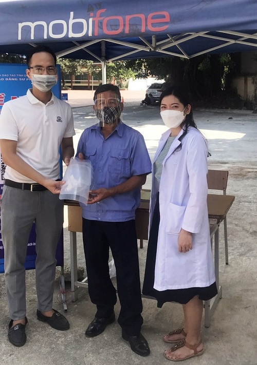 Đoàn Trường tặng kính chống giọt bắn cho lực lượng kiểm soát khách ra vào trường.