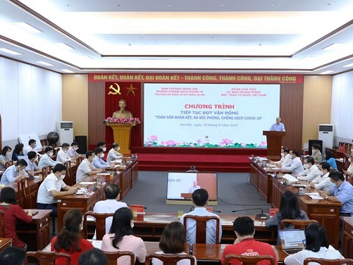 Được sự đồng ý của Thủ tướng Chính phủ tại văn bản số 6883/VPCP-QHĐP, ngày 16/9, tại Hà Nội, Đoàn Chủ tịch Uỷ ban Trung ương MTTQ Việt Nam và Tiểu ban Vận động và huy động xã hội thuộc Ban Chỉ đạo Quốc gia phòng, chống dịch Covid-19 tổ chức chương trình tiếp tục đợt vận động “Toàn dân đoàn kết, ra sức phòng chống dịch Covid-19”.