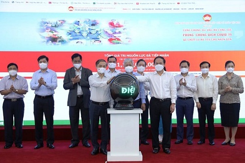 Tại buổi lễ, Tiểu ban Vận động và huy động xã hội thuộc Ban Chỉ đạo Quốc gia phòng chống dịch Covid-19 đã chính thức ra mắt hệ thống đóng góp trực tuyến thông qua địa chỉ truy cập: http://vandongxahoi.mattran.org.vn