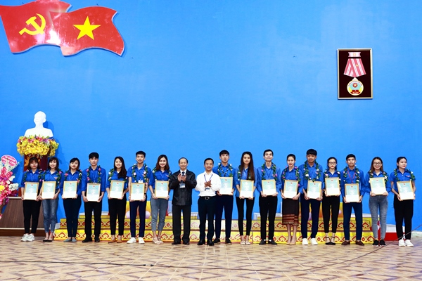 Đại diện Lãnh đạo nhà trường và BCH Đoàn trường trao danh hiệu sinh viên 5 tốt cho các sinh viên tiêu biểu của nhà trường.