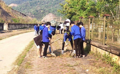 ĐVTN tham gia hoạt động trồng mới cây xanh.