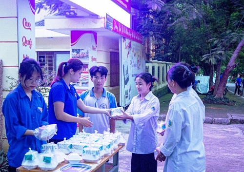 Phát đồ ăn sáng, nước uống, đồ dùng, dụng cụ học tập miễn phí.