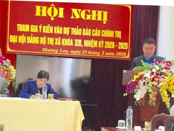 Tại các Hội nghị Lấy ý kiến Dự thảo văn kiện Đại hội Đảng bộ thị xã Mường Lay khóa XIV, nhiệm kỳ 2020-2025, sau khi nghe dự thảo báo cáo chính trị, 100% các ý kiến nhất trí theo dự thảo báo cáo về bố cục và nội dung của báo cáo. Báo cáo được đánh giá chi tiết kết quả đạt được trong 5 năm thực hiện Nghị quyết Đại hội Đảng bộ thị xã khóa XIII; bên cạnh đó các ý kiến thống nhất đề xuất chọn chủ đề Đại hội đại biểu Đảng bộ thị xã Mường Lay khóa XIV, nhiệm kỳ 2020-2025 là: “Nâng cao năng lực lãnh đạo, sức chiến đấu của Đảng bộ; xây dựng hệ thống chính trị tinh gọn, hoạt động hiệu lực, hiệu quả; phát huy sức mạnh đại đoàn kết các dân tộc; đẩy mạnh phát triển kinh tế-xã hội, đảm bảo quốc phòng an ninh, xây dựng thị xã theo hướng thương mại, dịch vụ, du lịch, nông lâm nghiệp-thủy sản”; Tư tưởng chỉ đạo đại hội “Đoàn kết - Dân chủ - Kỷ cương - Phát triển”.