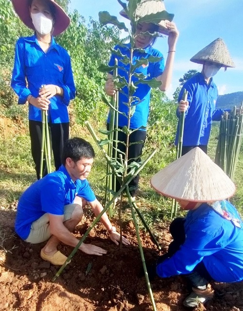 Đoàn viên thanh niên giúp đỡ gia đình thương binh trồng và chăm sóc cây Mắc ca