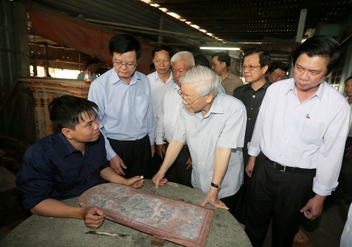 Tổng Bí thư Nguyễn Phú Trọng thăm hỏi công nhân làng nghề sản xuất gỗ truyền thống