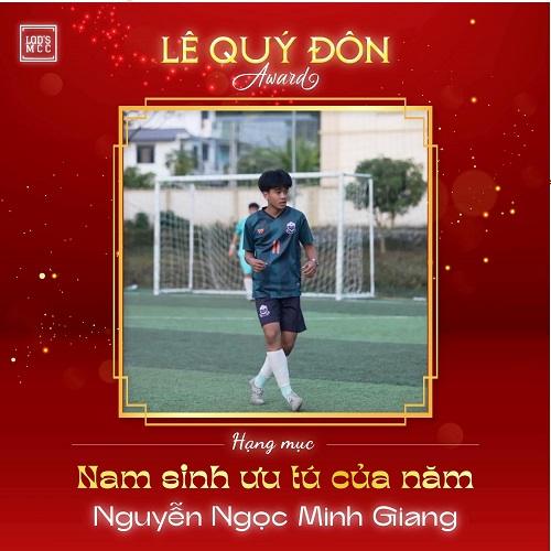Em Nguyễn Ngọc Minh Giang. Được sự dìu dắt của thầy và cô trường THPT chuyên Lê Quý Đôn, em Nguyễn Ngọc Minh Giang đã đạt được nhiều thành tích cả trong học tập như: Giải khuyến khích ATGT cấp Quốc gia; Giải Ba HSG tỉnh môn Tiếng Anh lớp 10 và 11; Giải Ba cuộc thi Thanh thiếu niên sáng tạo cấp Tỉnh; Đạt học bổng trường chuyên năm học 2022-2023; Giải Nhất KHKT cấp tỉnh năm học 2023-2024; Giải Khuyến khích KHKT cấp trường năm học 2022-2023.